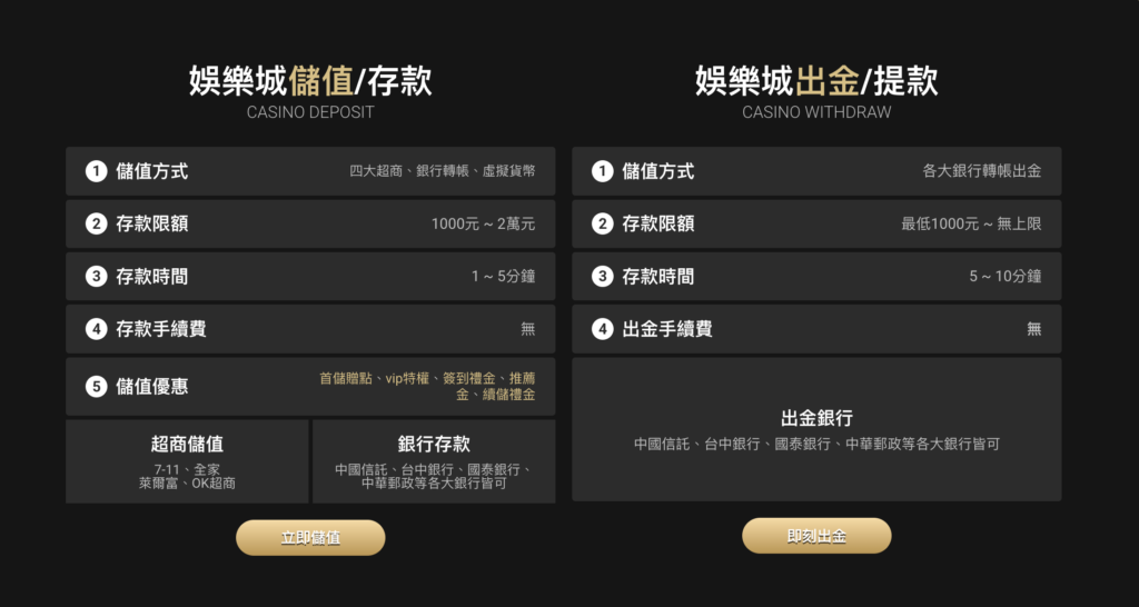 - 百家樂:專屬桌面設計,含高低風險玩法選擇;