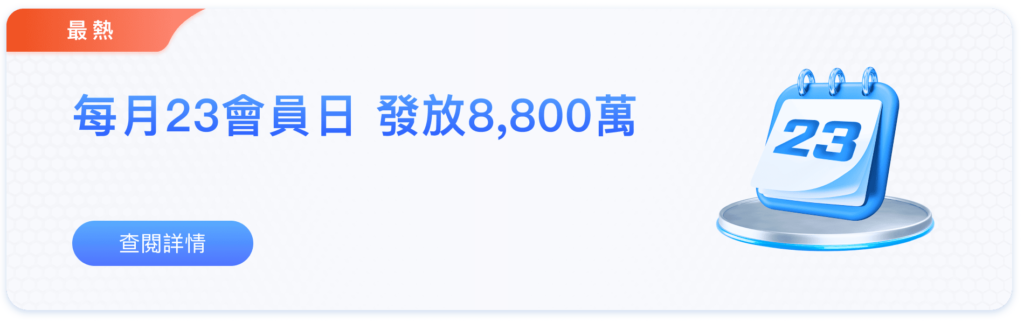 88win娛樂城以豐富且多樣的優惠活動吸引新玩家並回饋忠誠用戶,不僅提升了玩家的遊戲體驗,也大幅提高了贏取獎金的機率。以下是平台上的熱門優惠活動: