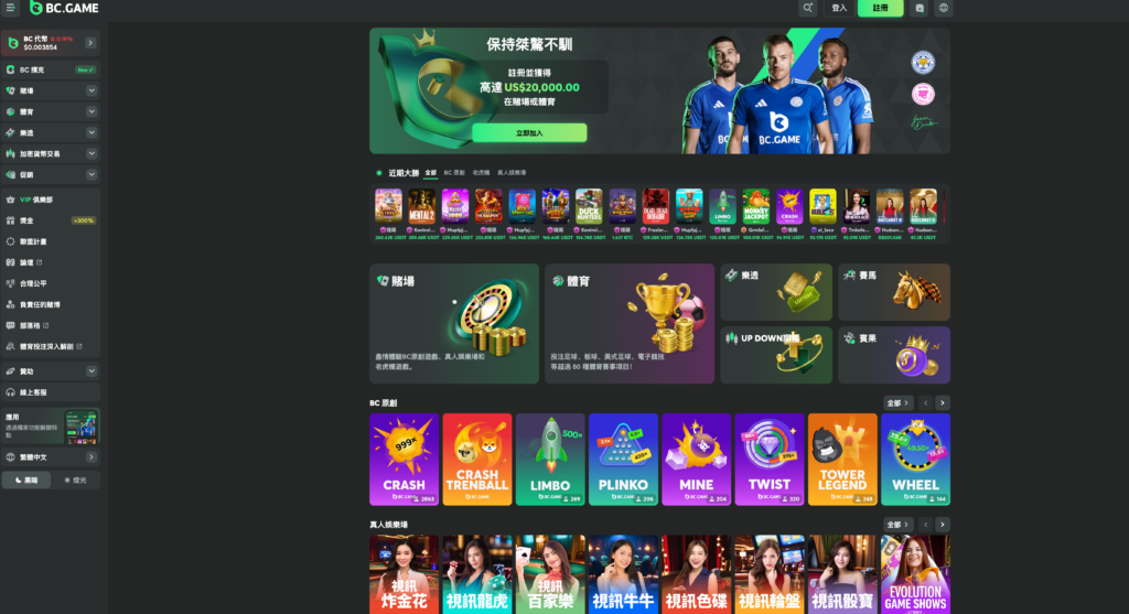 BC.Game 是另一個佔據榜單高位的賭場平台,它不僅易於操作,還能讓新人迅速上手!