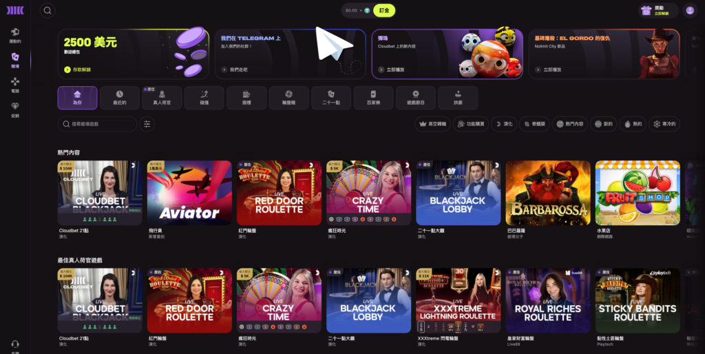 Cloudbet賭場則為用戶提供了豐富的遊戲選擇,包括深受玩家歡迎的「比特幣百家樂」(Bitcoin Baccarat)、「比特幣二十一點」(Bitcoin Blackjack)、經典老虎機(slots)以及多種賭桌遊戲。此外,Cloudbet中特色的「可驗證公平」(provably fair)街機遊戲尤其受到玩家的喜愛。這些遊戲包含骰子(Dice)、基諾(Keno)、迷你輪盤(Mini Roulette)、跳棋(Plinko)、飛行員(Aviator)、地雷(Mines)以及目標地雷(Goal Mines)。這些遊戲不僅趣味十足,還能滿足玩家對實際金錢投注公平性的好奇心,展示了透明且可信的遊戲機制。