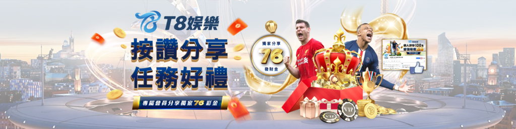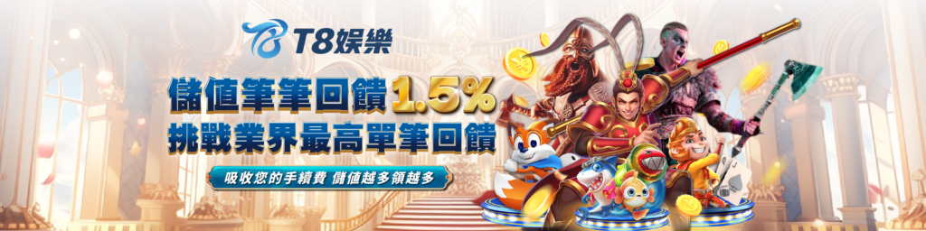 了解T8娛樂城,成立於2015年,合法博彩執照保障!真人娛樂、電子遊戲、體育博彩全覆蓋,首存送100%獎金,超值返水與VIP專屬優惠享不停!